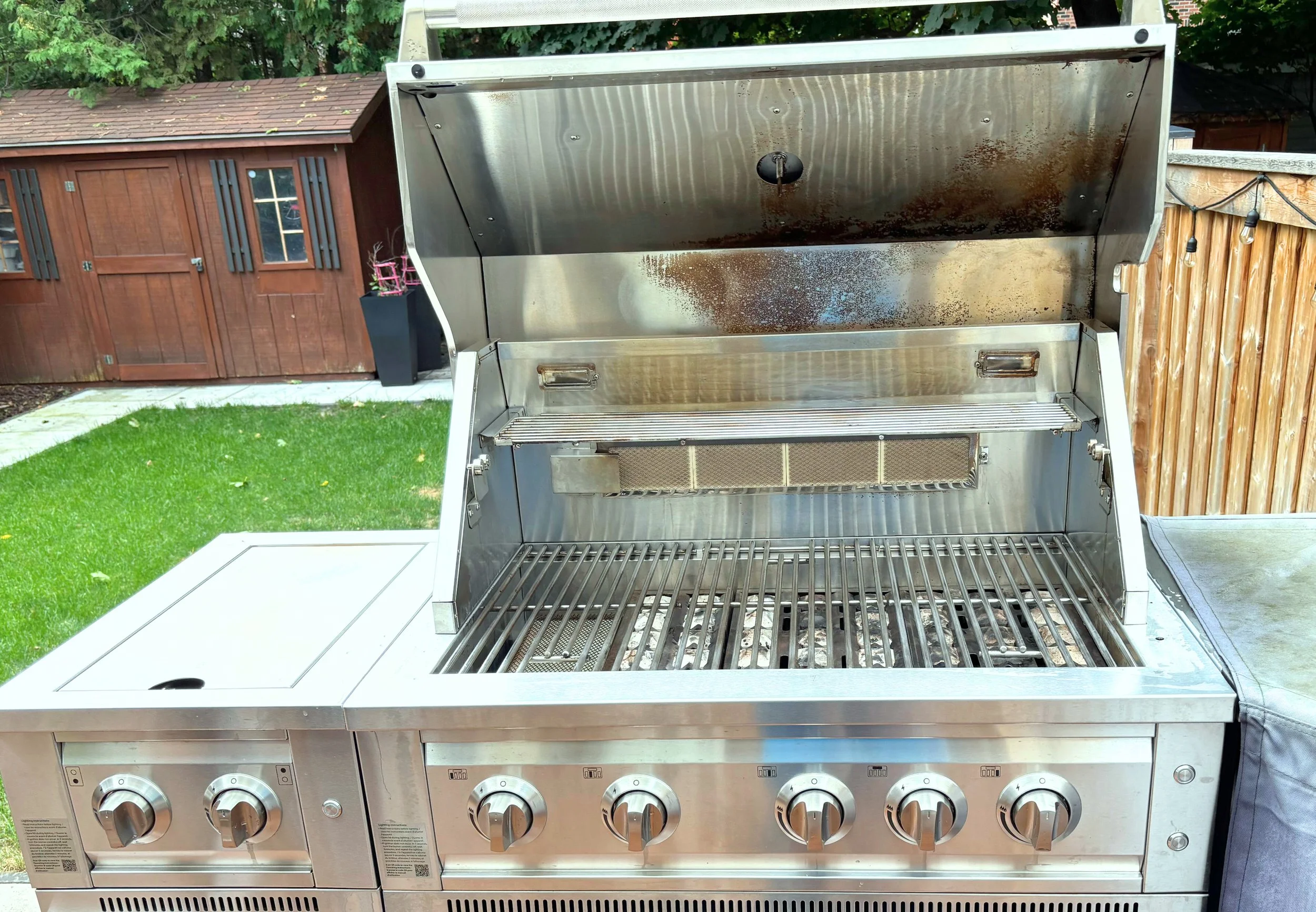 fresh clean barbecue BBQ with new grill plates, flavoriser bars and heat deflectors